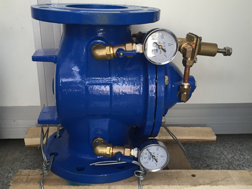 2.主閥外部配套,組成部分件主要有:先導(dǎo)減壓頭、銅管兩根、針閥一個。在DN200以上較大口徑的成品銅管上配套有銅球閥。并另可要求配置壓力表。